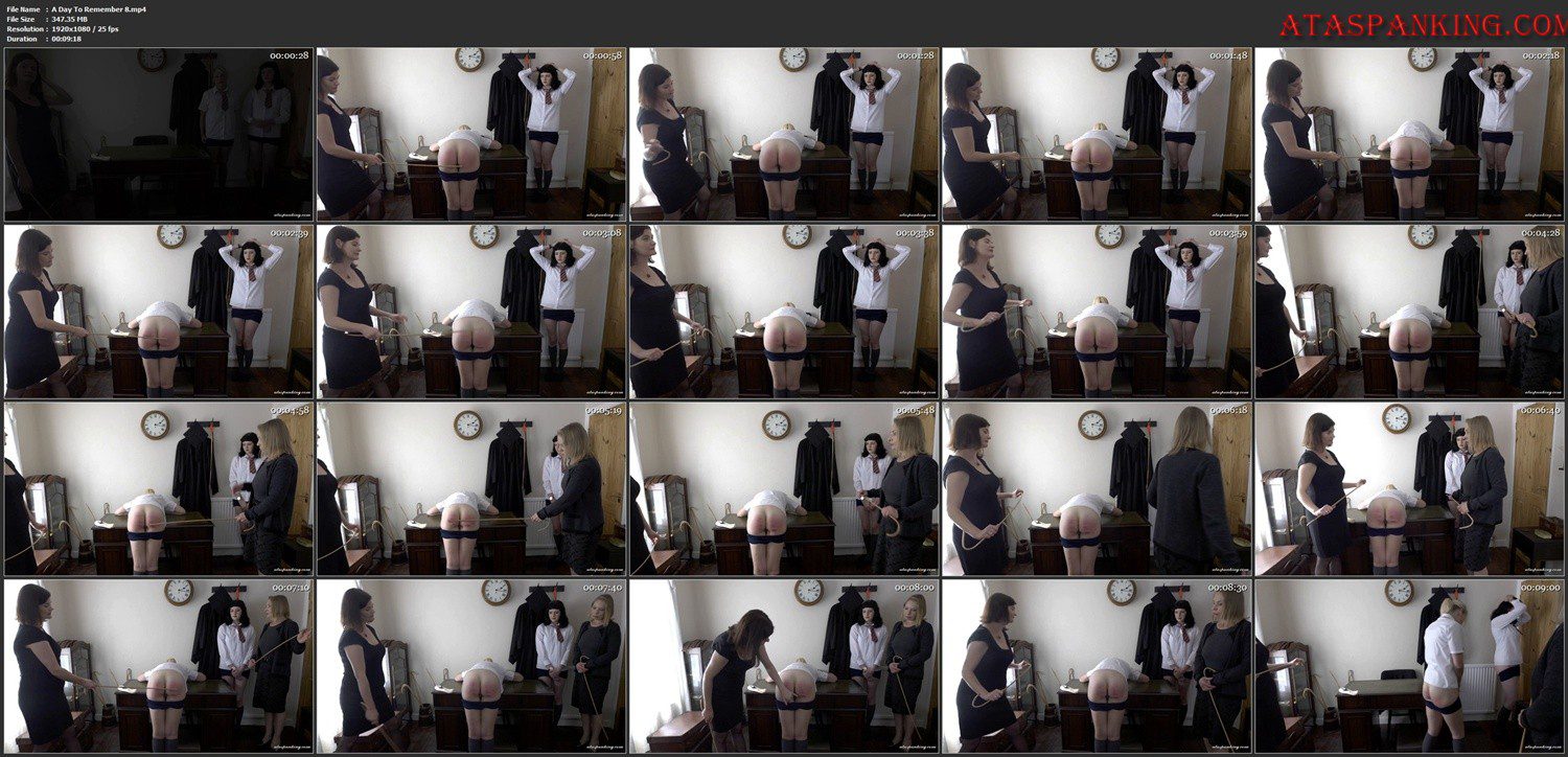 Nosy little Charlotte has one punishment remaining, and it will surely be the worst. Bent over Miss Mathew’s desk, she displays her hot young bottom for six strokes of the teacher’s cane, buckling at the knees with each hard, stingy stroke. I enter to find poor Charlotte in utter agony, but her anguish matters little to me, and I lay another six strokes from my cane across her beaten and bruised cheeks. Finally, another three hard strokes from Miss Mathews gives this naughty schoolgirl something to remember.