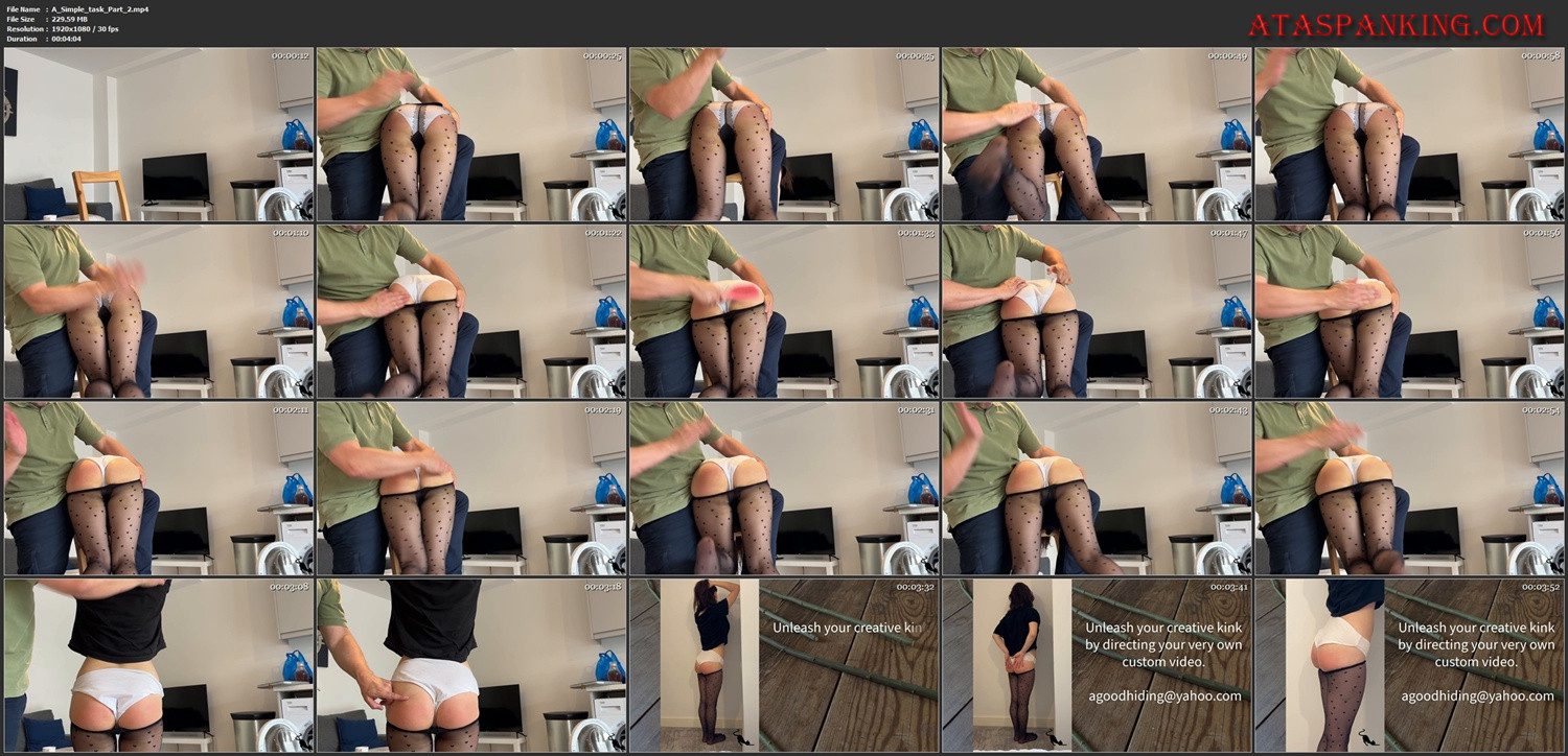 Kinia was sent to the corner for some well needed timeout. She had been spanked earlier but it had not calmed her down. Would a little time of reflection in the corner work? No, so out she came for more over the knee spanking. Resolution : 1920x1080 Duration : 00:04:04 Download on tezfiles.com - A_Simple_task_Part_2.mp4 - 229.6 MB