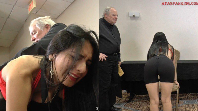 Sassy Alana Noex is already sore from four previous spankings, and now she gets the seat of her thin spandex shorts warmed over Principal Tubaman’s knee before being sent to the corner.