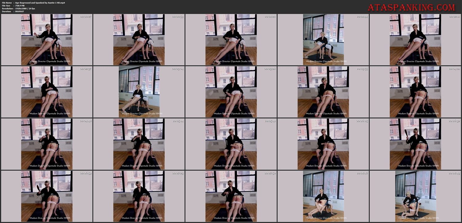 Amy’s bottom begins to get warm and red. Auntie Dolores seems pleased with the spanking so far, but she has only just started with Amy’s regression and discipline. (9:07 long)