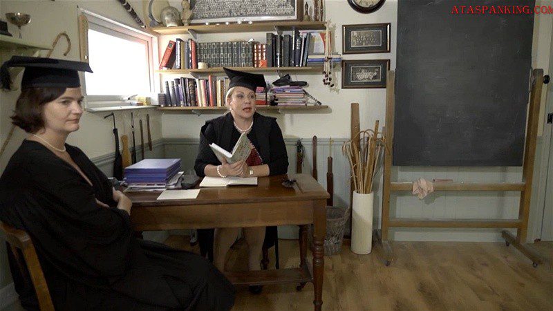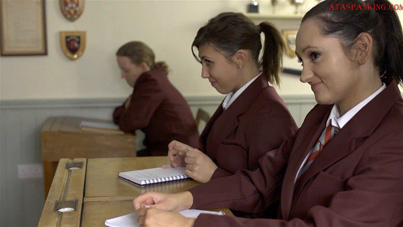Some food has gone missing from the school kitchen and three very contrite girls, Mary, Maureen and Diana, must face the music. They are told off by their teacher, Miss PSullivan and while another teacher, Miss Matthews watches, are punished in turn. First up is Mary who has her hands slapped with a ruler before going over Miss Prim’s knee for a bare-bottomed spanking.