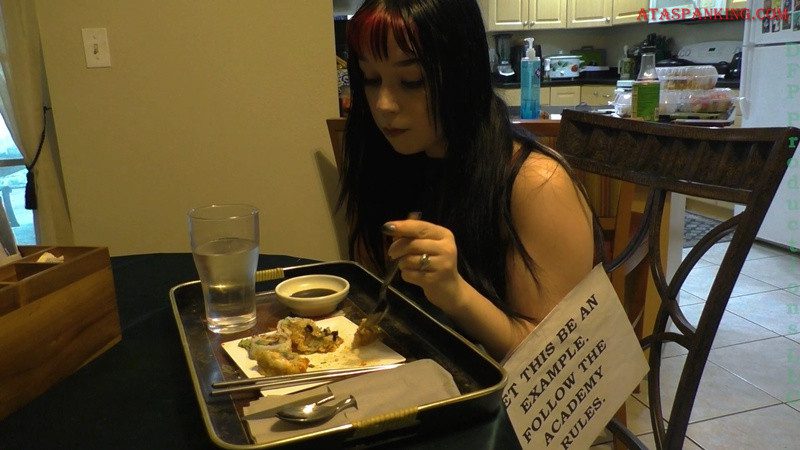 Ditria Rose is being punished again! The goth student has broken the rules yet again and so is made to strip in front of the class and get yet another spanking! Today it’s not about the spanking though! Today we’ll be watching as Ditria has to get through her day after the spanking with her uniform confiscated! It’s easy to forget that the last part of an Academy punishment is to have the uniform confiscated for the day so Ditria need to have her lunch and go to her other classes in nothing but her stockings and garter belt, and her school tie!