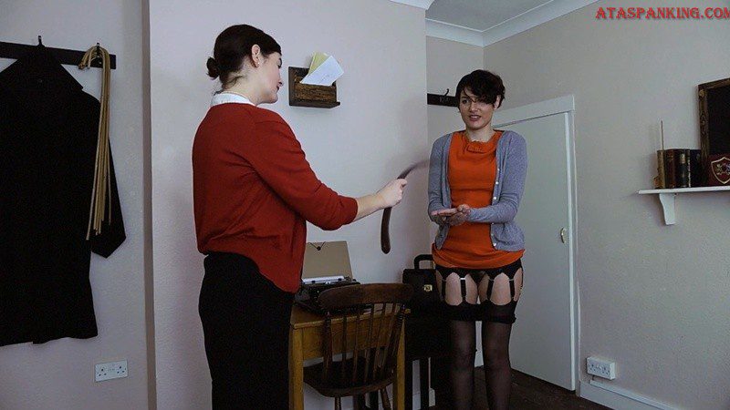 Friday Afternoon 1: Miss Jones is a terrible secretary, and also dresses like a little tart. Miss Mathews has reached the end of her patience, and bends the young lady over her desk for six of the best… a cold, hard caning for this lazy slouch. With a sorely striped bottom, Miss Jones holds out her hands, wincing in pain whilst she receives a hard tawsing on her soft, pampered palms.