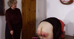 Having already been caned in their hussywear, Denise watches in fear while Bernadette’s already sore bottom faces out from the spanking bench, her garter straps perfectly framing the angry red stripes on her bottom. Miss Svenson fetches a bundle of birch twigs, and Bernadette is whipped senseless while screaming in pain. All Miss Svenson feels is irritation