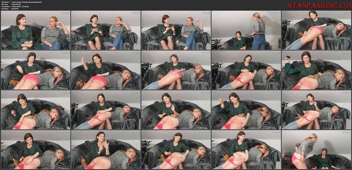 When Leia borrows Miss Matthews laptop to complete her assignment, she gets a little distracted and decides to have a little browse on the internet about spanking no less! Miss Matthews likes to keep a check on Leia and what she is up to and checks Leia’s internet search history. When Miss Matthews finds what she is looking for, she confronts Leia and decides a punishment in order. Miss Matthews has Leia lower her tight jeans and get across her lap. She has FOUR different hairbrushes to treat Leia’s bottom with, which Leia is horrified by! Before Miss Matthews gets going on the hairbrush spanking, she warms Leia’s bottom with a spanking, over her knickers at first, but then on Leia’s bare bottom, oh my!