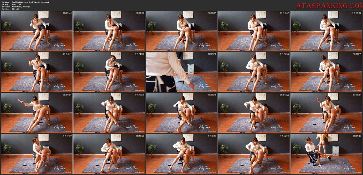 There’s less scolding here, and much more action: long, steady spanking with both my hand and the brush.