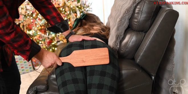 Shifting positions to bend over the back of the chair, Troublemaker is spanked with a stout wood paddle. Tired of her theatrics, he pulls her thin yoga pants down to …