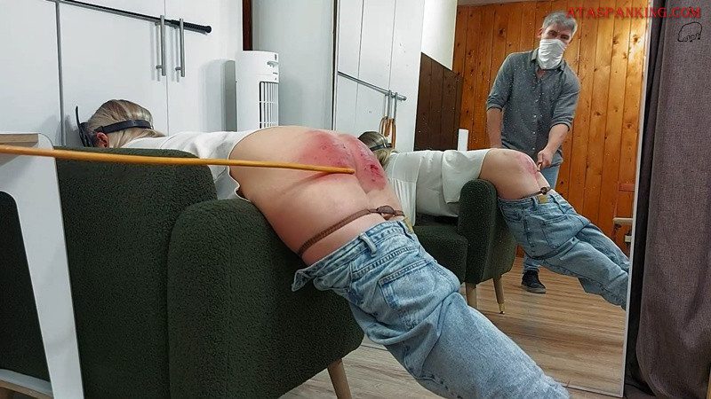 Master Hippo continues to punish Mrs. Flamingo corporally. He canes her bare ass. Strikes start at 1 and each set adds one strike. In the final she receives 16. In total, 136 strokes of the rattan cane were received.